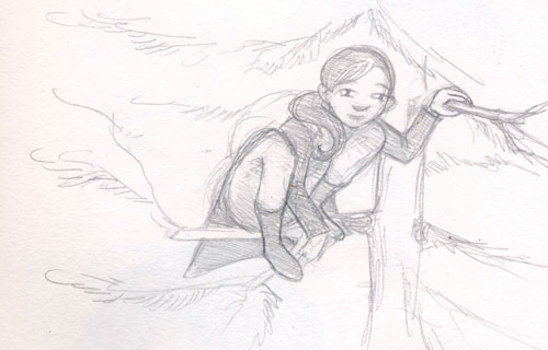 Also, I am indeed trying to back away from realism. These facial proportions have shown up in my sketchbook before so I am paying attention to them.