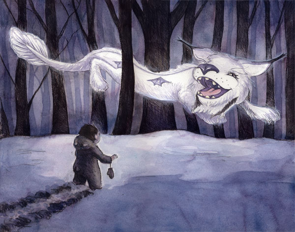 2. Casey, this is amazing. I love the flying dog/wolf. I don’t get snow over here, but certainly did grow up with it for 25 years of my life, so this drawing brings back some warm fuzzies in me. Love it.