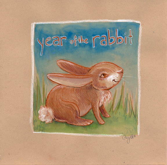 Also keeping me on track are my weekly post themes, today, Animal Wednesday! I always like to illustrate the animal of the year. However, this is the first year I am happy with and willing to share my drawing. My year of the Rat image defied gravity, literally my rat was standing on air because of a bad perspective. Anyway, this is my rabbit, I am selling this piece on my etsy store too.