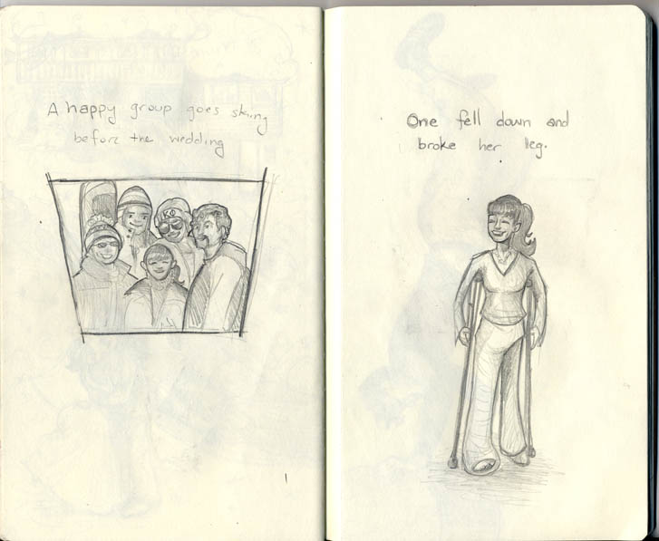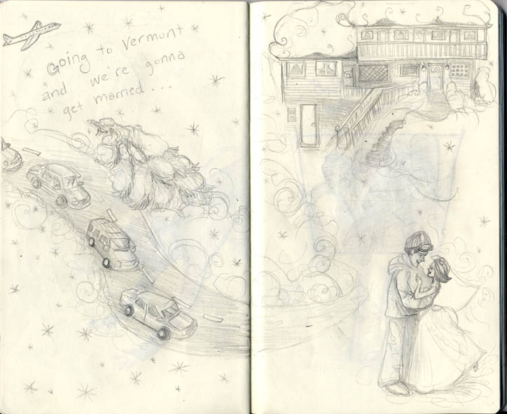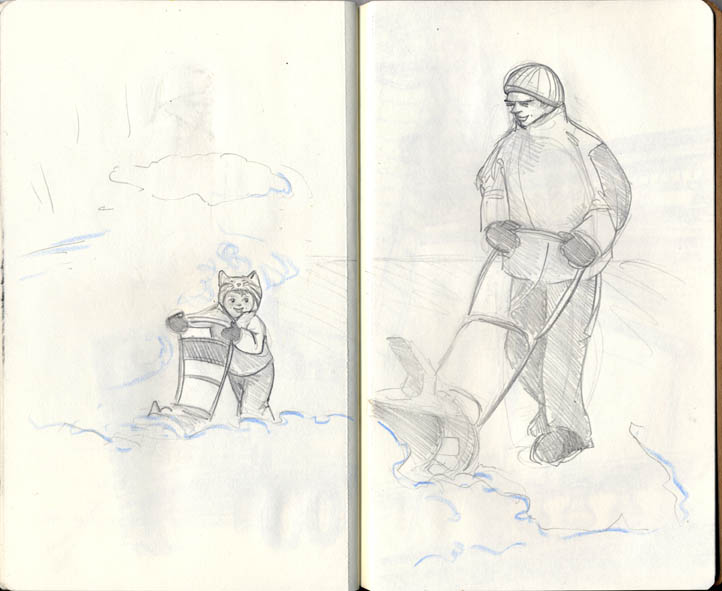 Now for the sketchbook project. I was hoping to complete more pages. In the end I illustrated on 64 pages removing 14 drawing pages-this counts front and back. What is below doesn’t carry a story, most are little hits from life with Matt. In the sketchbook a spread from last week’s post goes in between each of these spreads, expect for the first two spreads below.