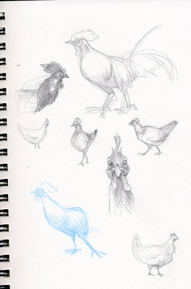 Chicken Week! Posted bycaseygJanuary 19, 2011Posted inAnimal Wednesday, My Sketchbook I was hoping to get farther and have a final chicken today. Here are my sketches so far: Like Loading... Related