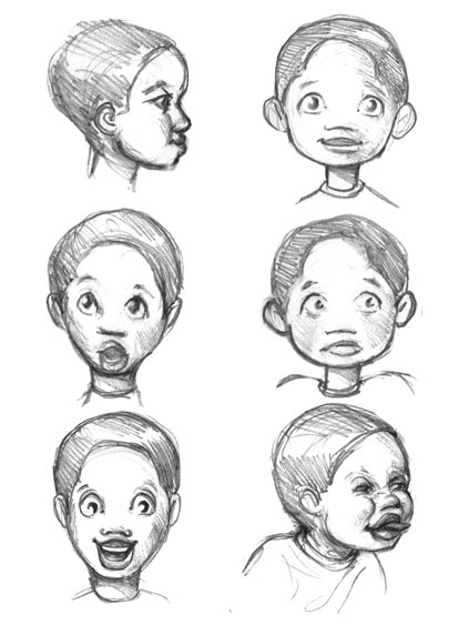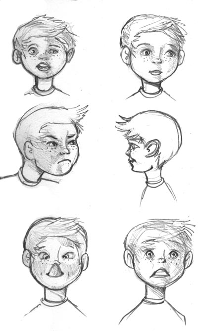 These are three characters for the dummy I am working on. Them in a group and then facial studies of each of them. Making faces at myself to figure out how to draw each one was silly. I am not solid on their names yet but these are my first thoughts. What do you think?