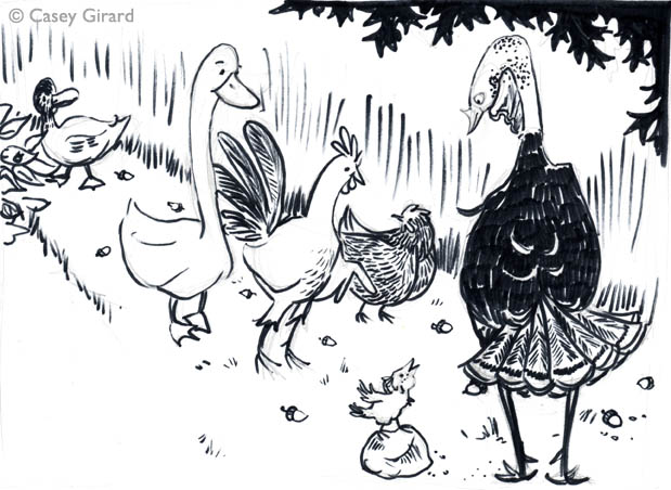 For now, here is a black and white final sketch of my Chicken Licken layout.