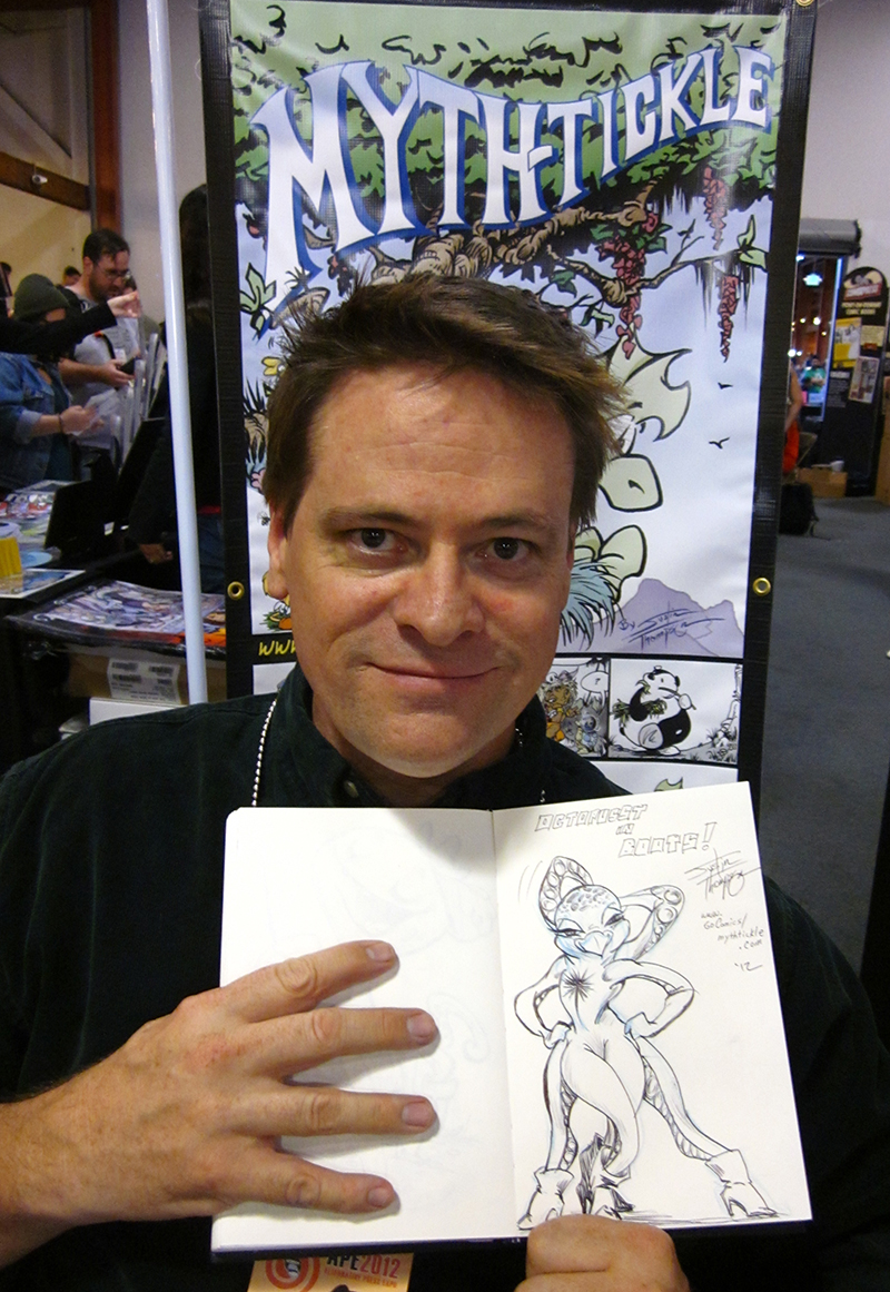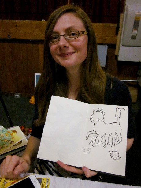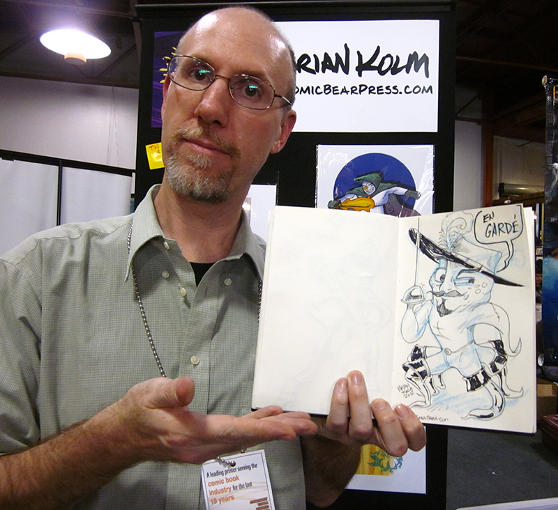 My table neighbors were wonderful. Justin Thompson with Mythtickle, Brian Klom with Atomic Bear Press and just a table over was Bill Robinson. Bill and I both attended RIT and were Art House members. It has been a few years since we were in touch; we had a great time catching up. He was kind enough to make us an Octo-Puss in Boots.
