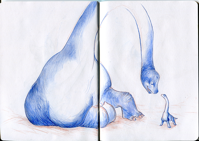 I blame my childhood plastic Brachiosaurus toy for why every Brachiosaurus I draw ends up blue. Here’s the culprit and yep this toy still lives at my house. This set of dinosaurs was the one thing I saved up my allowance for. I remember being so proud the day I could afford this big mama. Yes, currently this dino is super too.