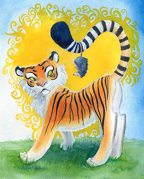 Here is the Tiger and Opossum. I finally got them finished up tonight. For a refresher here is the pastel color comp of them.