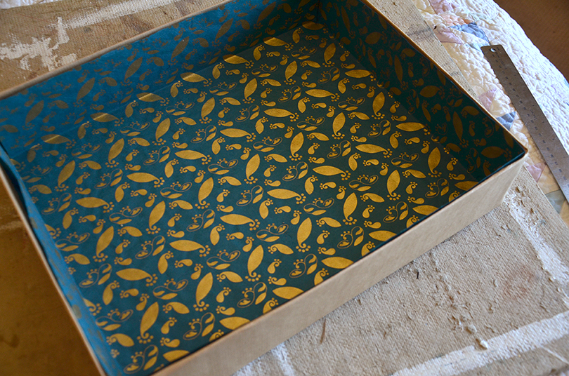For the inside paper I choose something decorative. I won’t have to look at it all the time so it won’t be distracting day to day but, it will be a treat whenever I open the box to get something out.
